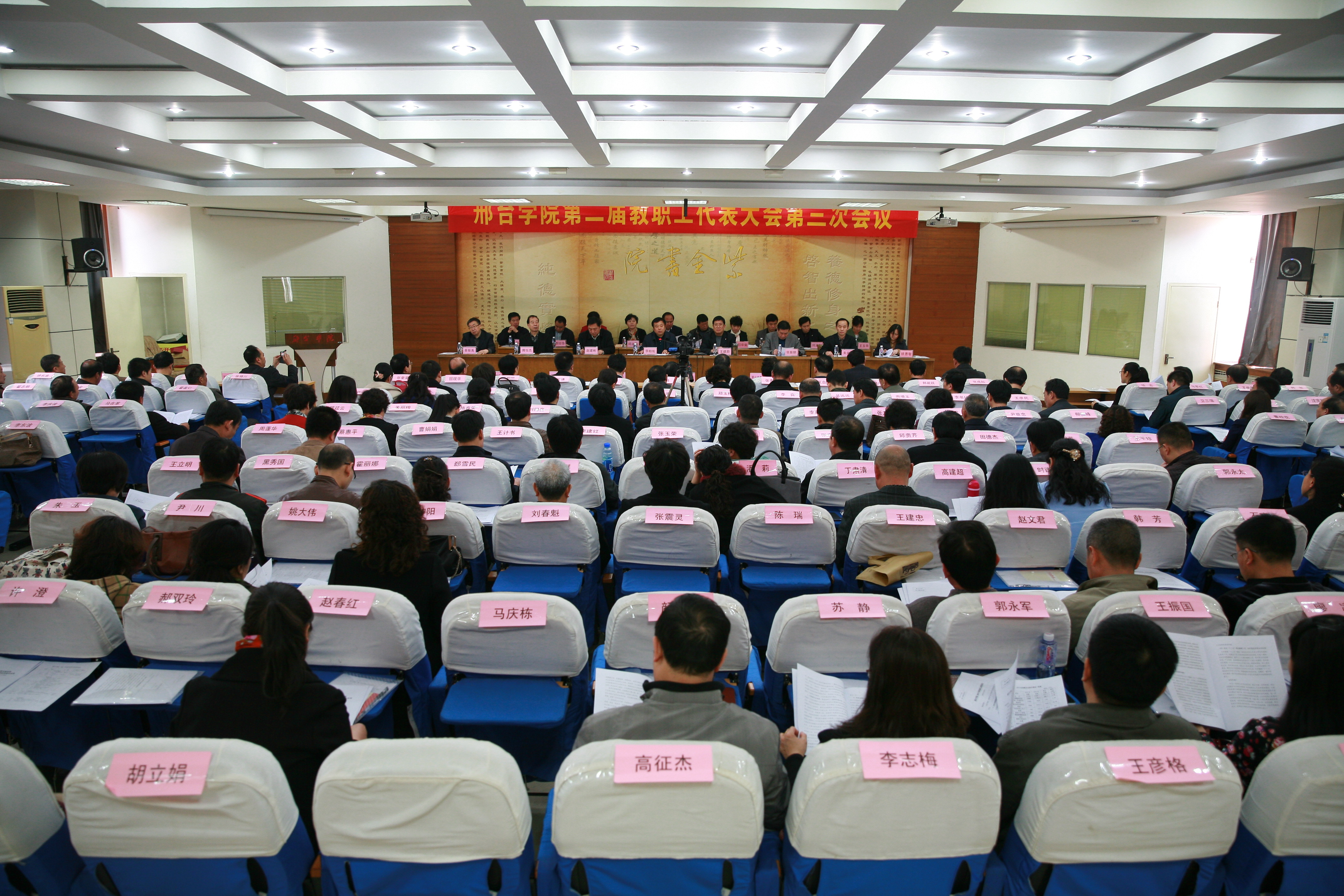 阳春三月,生机盎然。邢台学院第二届教职工代表大会第三次会议于3月28日在校图书馆报告厅隆重召开。党委书记李相佑,校长王建勋,党委副书记赵建彬,党委常委、副校长张振朝、傅恒杰、朱金亮,副院长蔡振禹,党委常委徐惠敏出席大会。来自9个代表团的125名正式代表和42名列席代表参加了会议。
