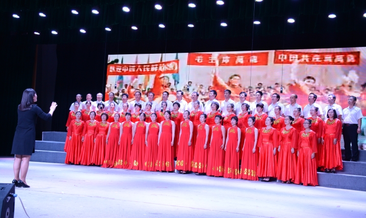 化生学院代表队第一个登场,院党委书记张树兴亲自上场指挥,他们《团结就是力量》的铿锵有力歌声回荡在音乐大厅,使观众们精神振奋,喝彩连连。接着,各分工会代表队依次登台,精彩演绎了《爱我中华》、《走向复兴》、《歌唱祖国》、《解放区的天》、《就为打胜仗》等革命歌曲。各参赛队员精神饱满、激情飞扬、意气风发,一首首耳熟能详的优美动听、激动人心的歌曲,唱出了对伟大祖国的赞美,对伟大中国共产党的热爱之情。比赛现场歌声飞扬,掌声、喝彩声此起彼伏,展示了我校教职工积极向上,团结一心的精神风貌。比赛最后,音乐学院学生合唱团以《祝酒歌》、《九儿》、《在灿烂阳光下》三首歌曲助演,他们天籁般的歌声展示了合唱的魅力,赢得观众们热烈的掌声,把歌咏比赛的现场气氛推向高潮。