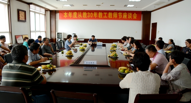 9月10日下午,为庆祝第34个教师节,我校在主楼12楼会议室召开从教三十年教职工座谈会。我校四十多名从教三十年的教师们欢聚一堂,党委书记李相佑同志参加了座谈会。
