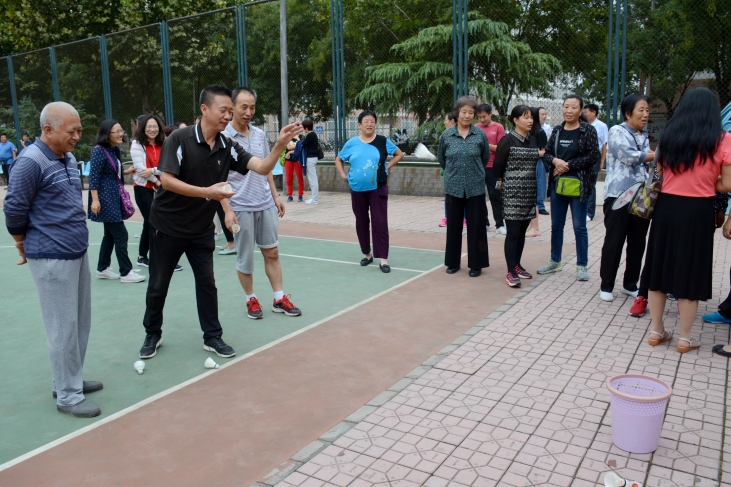本次教工运动会设有定点投球、飞镖、踢毽、定点投篮、单腿载物跑、地滚球等项目。运动场上,笑声阵阵,喝彩连连,教职工们走下三尺讲台,暂时离开忙碌的工作岗位,情绪高涨,积极参加各项比赛项目。青年教师们身姿矫健,意气风发,在运动场上大展身手,尽情挥洒激情和活力。老教师们不甘落后,稳抓稳打,认真参与每个项目,重现年轻时的风采。